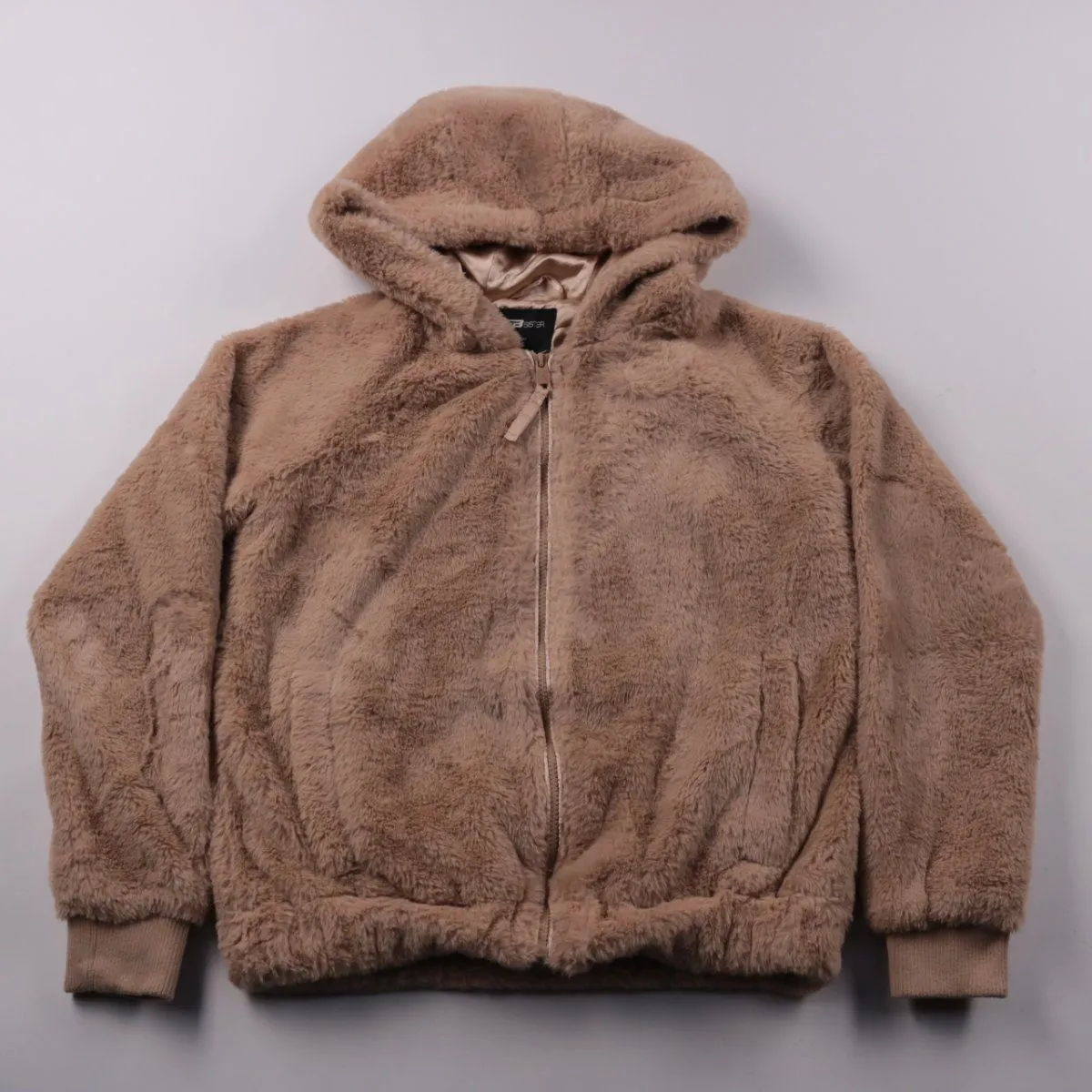 Лёгкая пушистая куртка FB Sister из мягкого искусственного меха с капюшоном и застёжкой на молнию. Подойдёт для прогулок и повседневных образов в прохладную погоду. Тёплая и приятная на ощупь, хорошо сохраняет комфорт за счёт мягкой подкладки.
