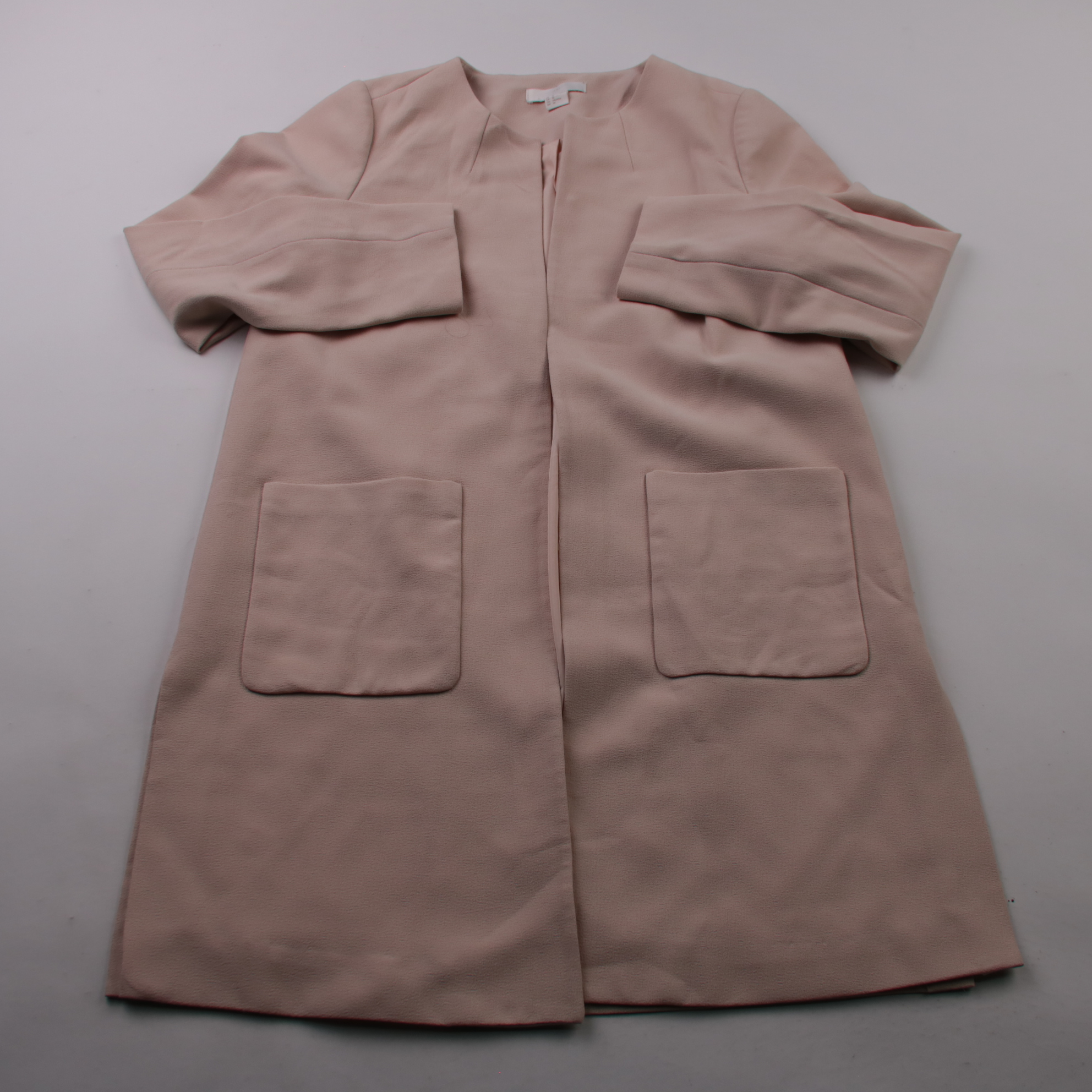 Женское пальто H&M в нежном пудрово-розовом оттенке, прямого кроя без воротника и с крупными накладными карманами. Подойдёт для прохладной весны и осени, хорошо сочетается с повседневными и более строгими образами. Практичный плюс — лёгкий материал с п...