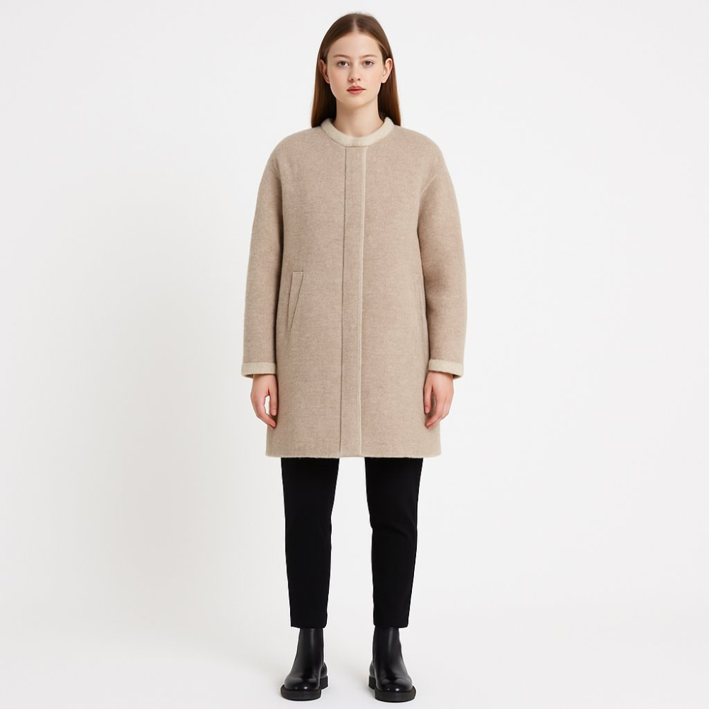 Женское пальто Clockhouse прямого силуэта в бежевом цвете, с круглым воротом и скрытой застёжкой. Подойдёт для повседневных образов и офиса в прохладную погоду. Практичное преимущество — плотная шерстяная ткань с подкладкой, которая держит форму и комф...