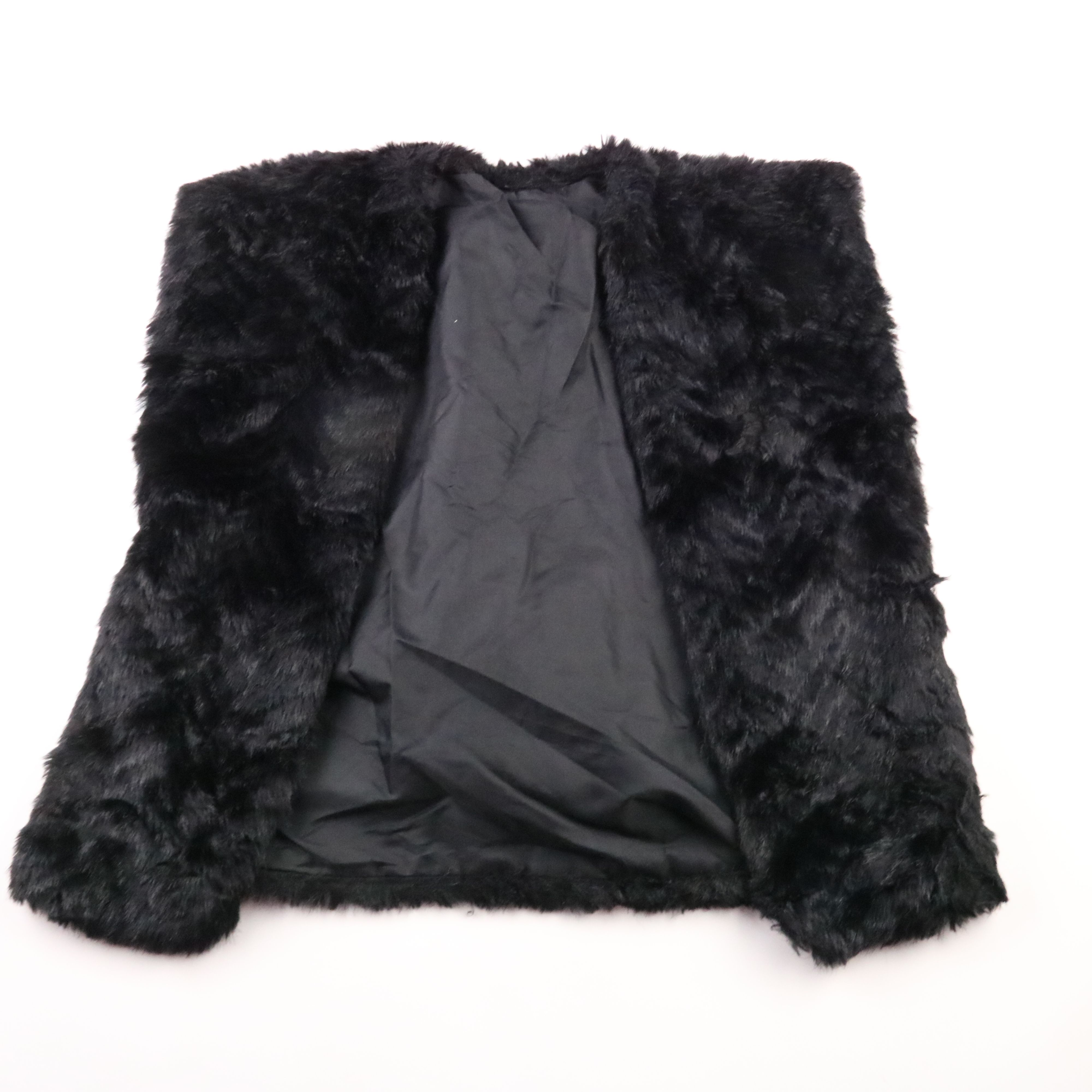 Чёрная короткая шуба из искусственного меха с гладкой подкладкой. Подойдёт для зимних прогулок и вечерних выходов, легко сочетается с платьями и джинсами. Практичный вариант: не требует сложного ухода и быстро освежается щёткой.