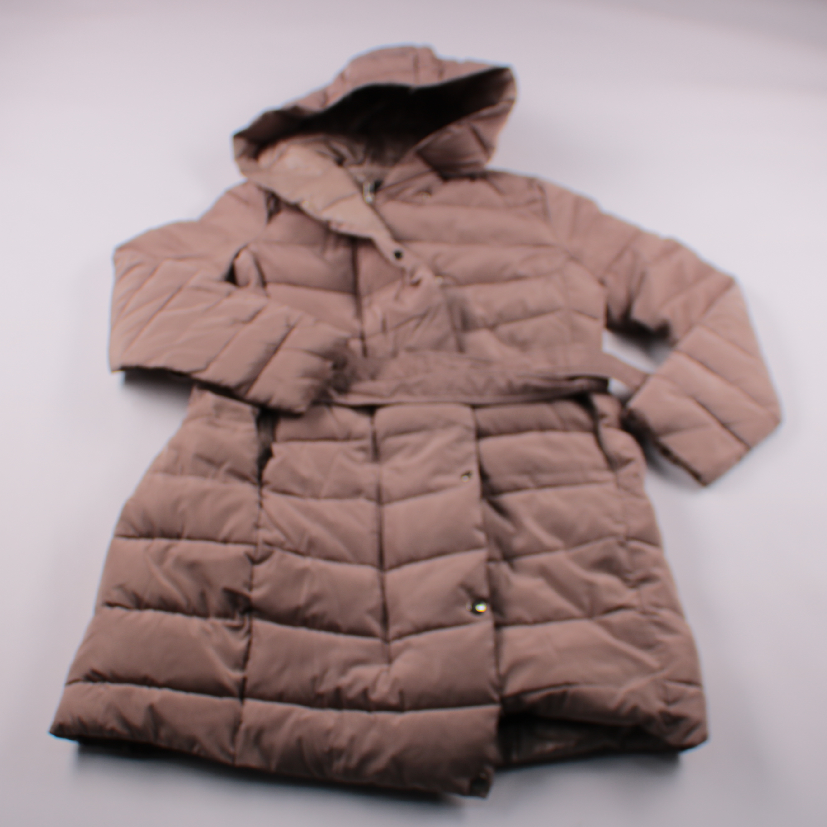 Женский пуховик Mohito в бежево-коричневом оттенке, стёганый и с капюшоном. Подойдёт для зимних прогулок и повседневной носки в городе. Застёжка на кнопках и удлинённый крой хорошо закрывают от ветра.