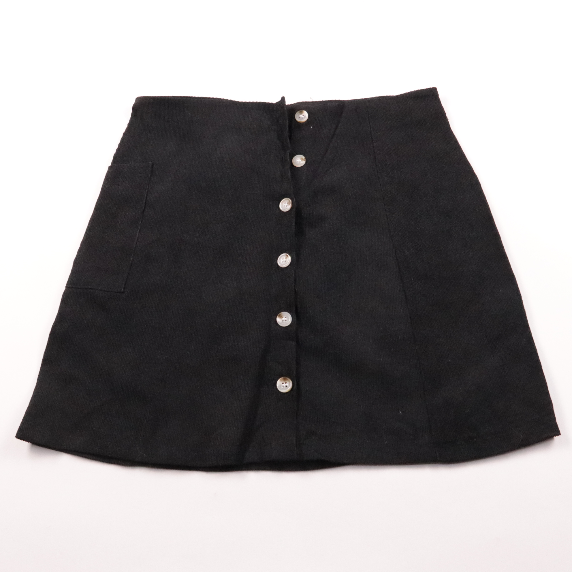Юбка Shein чёрного цвета с высокой посадкой и застёжкой на пуговицы спереди. Подойдёт для повседневных и офисных образов, легко сочетается с рубашками, топами и жакетами. Практичная ткань из полиэстера почти не мнётся и проста в уходе.