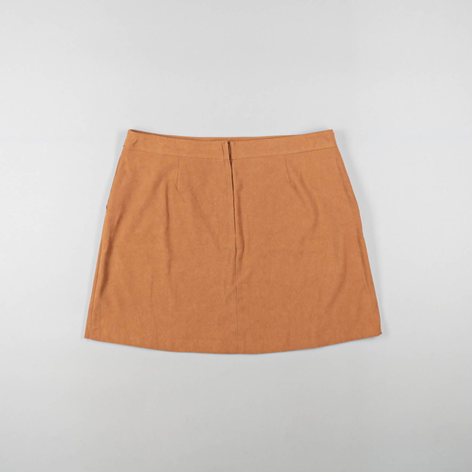 Короткая женская юбка прямого кроя в бежево-коричневом оттенке, без явного бренда. Подойдёт для повседневных и офисных образов с рубашкой, водолазкой или жакетом. Практичный плюс — легко комбинируется с базовой обувью и верхом.